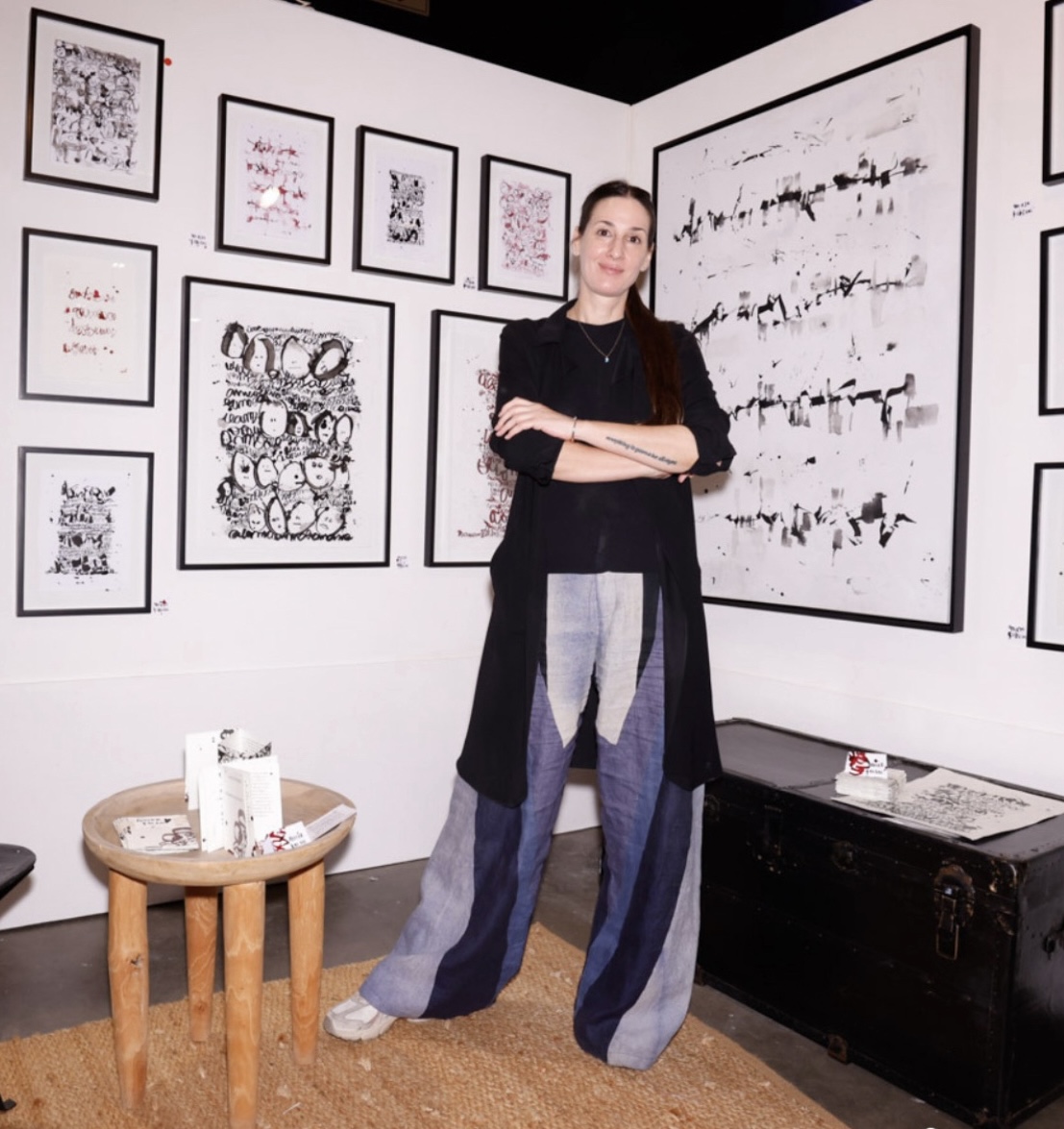 Escribe y pinta. En su obra visual explora el gesto de la escritura como forma de indagar la relación entre texto y visualidad.